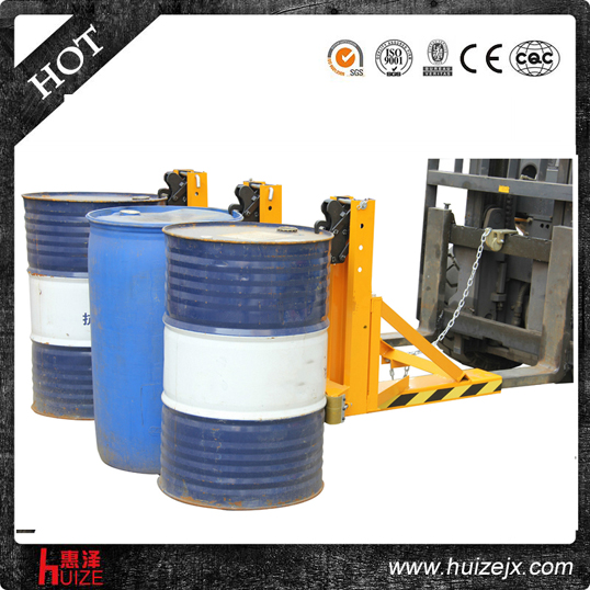 重型三油桶夾單鷹嘴DG1500C純機械機構(gòu)設計可與叉車方便地配合,僅依靠叉車的動作,不需要其它的動力,可自動一次搬運3個桶, 能處理更多類型的桶,包括鋼制油桶和塑料油桶, 配置可拆換式柔性耐磨保護墊,有效保護油桶并緩沖叉車行駛過程中的震動, 能在集裝箱等這樣狹小的環(huán)境內(nèi)裝卸桶裝物質(zhì),可極大地提高空間利用率, 與貨叉連接配有自鎖裝置確保油桶夾在坡度上和顛簸路面使用時不會滑落.